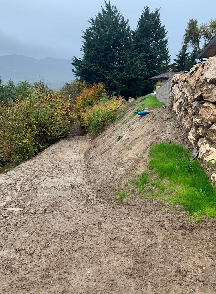 Ce projet à Annecy a consisté en la création d’une piscine en béton sur un terrain en pente, un défi que nous avons relevé grâce à notre expertise en terrassement. Afin d’assurer la stabilité du terrain, nous avons nivelé la surface avant d’entamer les travaux de construction. Une terrasse en béton a été réalisée devant la maison, créant un espace extérieur élégant et pratique, idéal pour les moments de détente.